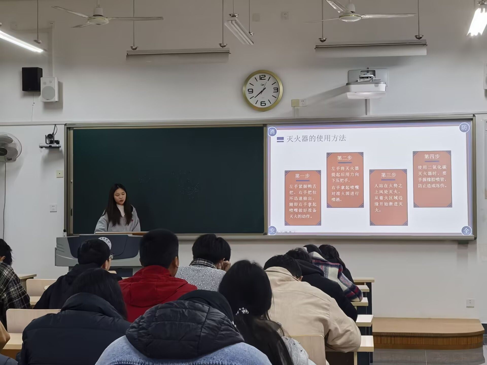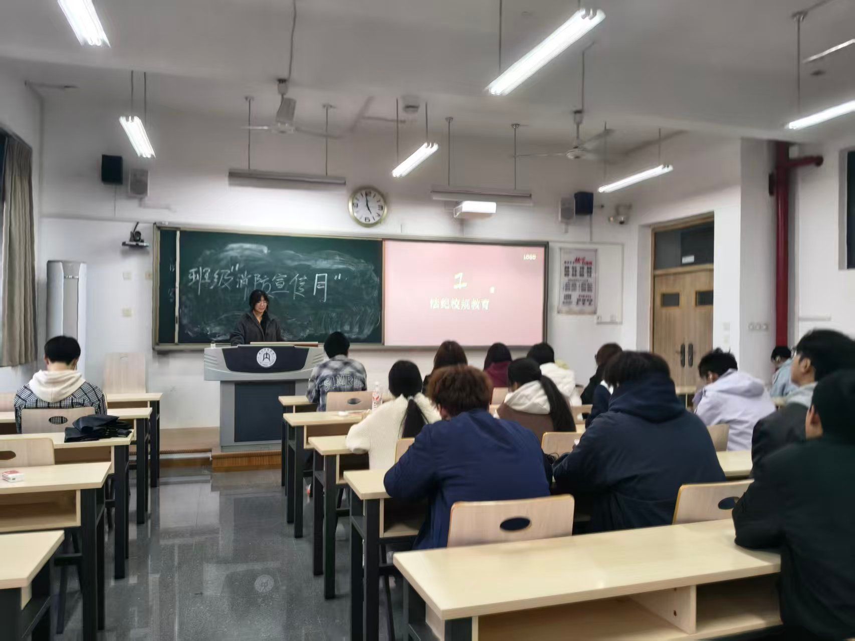 班会伊始,各班班主任结合校园消防安全案例,通过PPT演示、视频播放等形式,直观讲解了火灾成因、初期火灾扑救方法、火场逃生技巧等核心知识,重点强调了宿舍违规用电、楼道堆放杂物等常见安全隐患的危害性。随后,通过消防安全知识问答、逃生路线模拟推演等形式,让学生在实践中巩固所学内容。