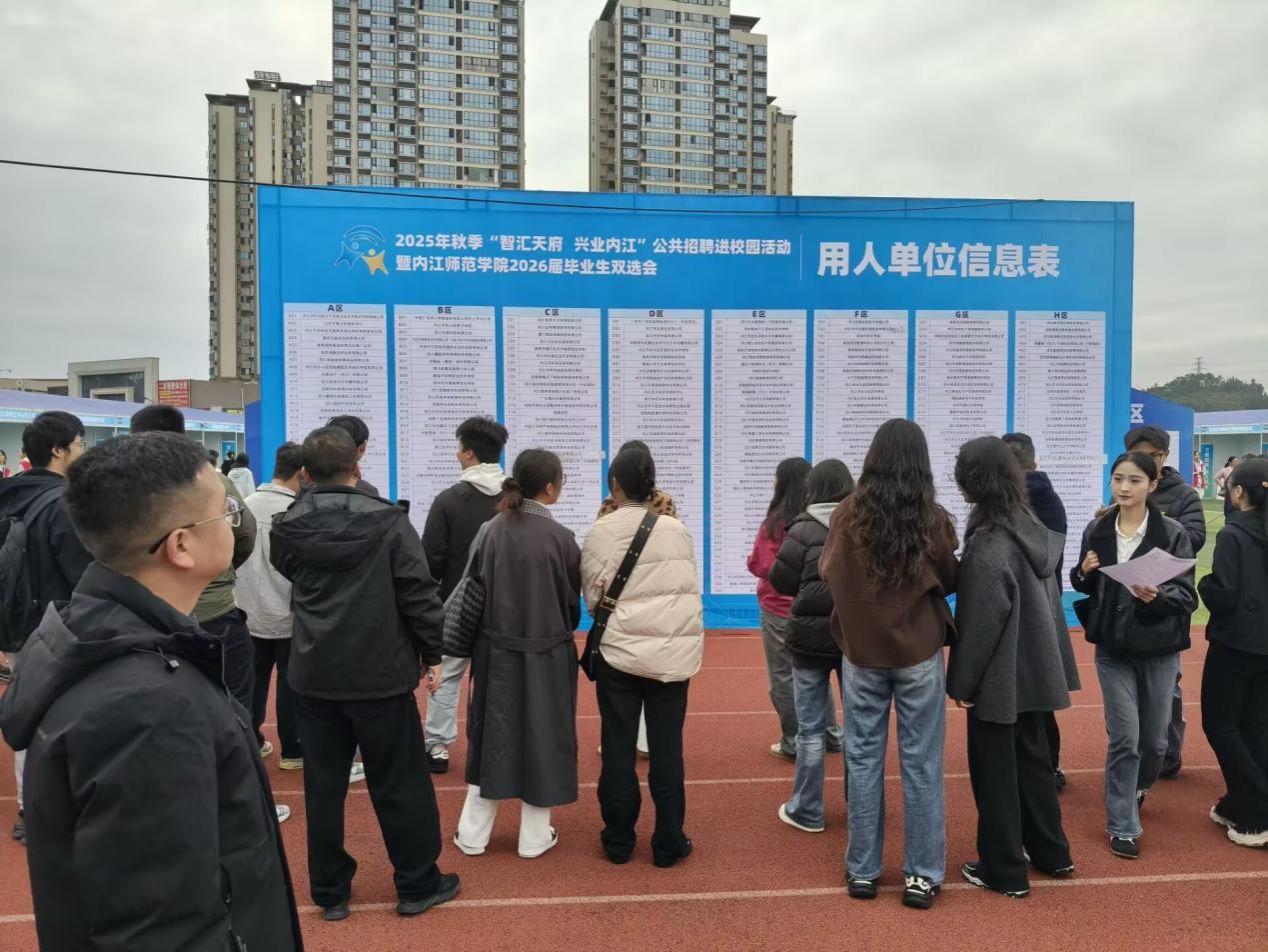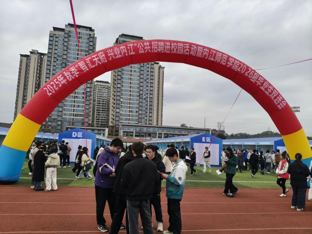 11月8日上午九时,内江师范学院2026届毕业生秋季校园双选会在学校田径场隆重举行。我院党委副书记胡晓东、副院长罗杨洁、全体辅导员以及大三大四年级班主任全程参与,积极提供就业指导,为毕业生顺利就业保驾护航。