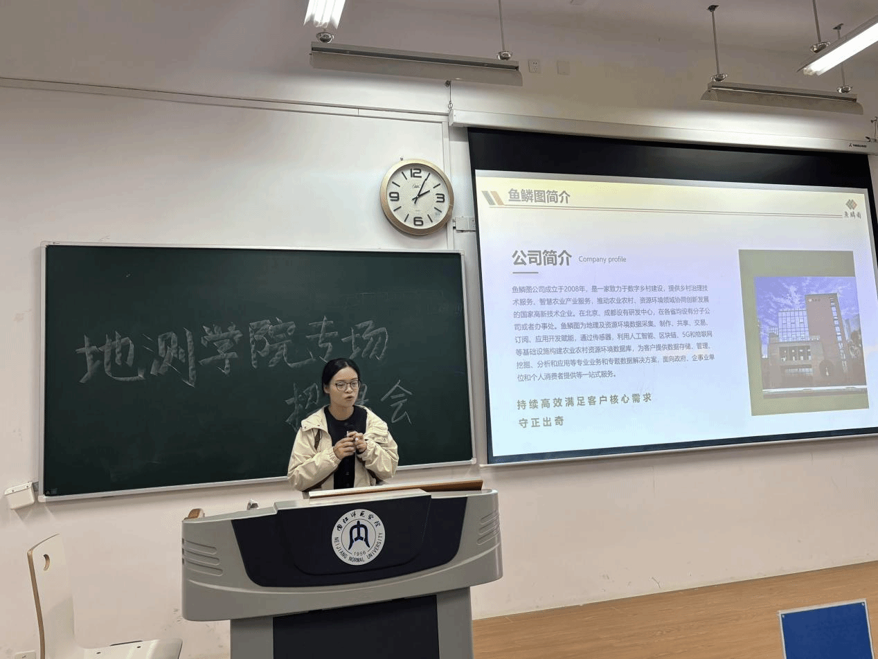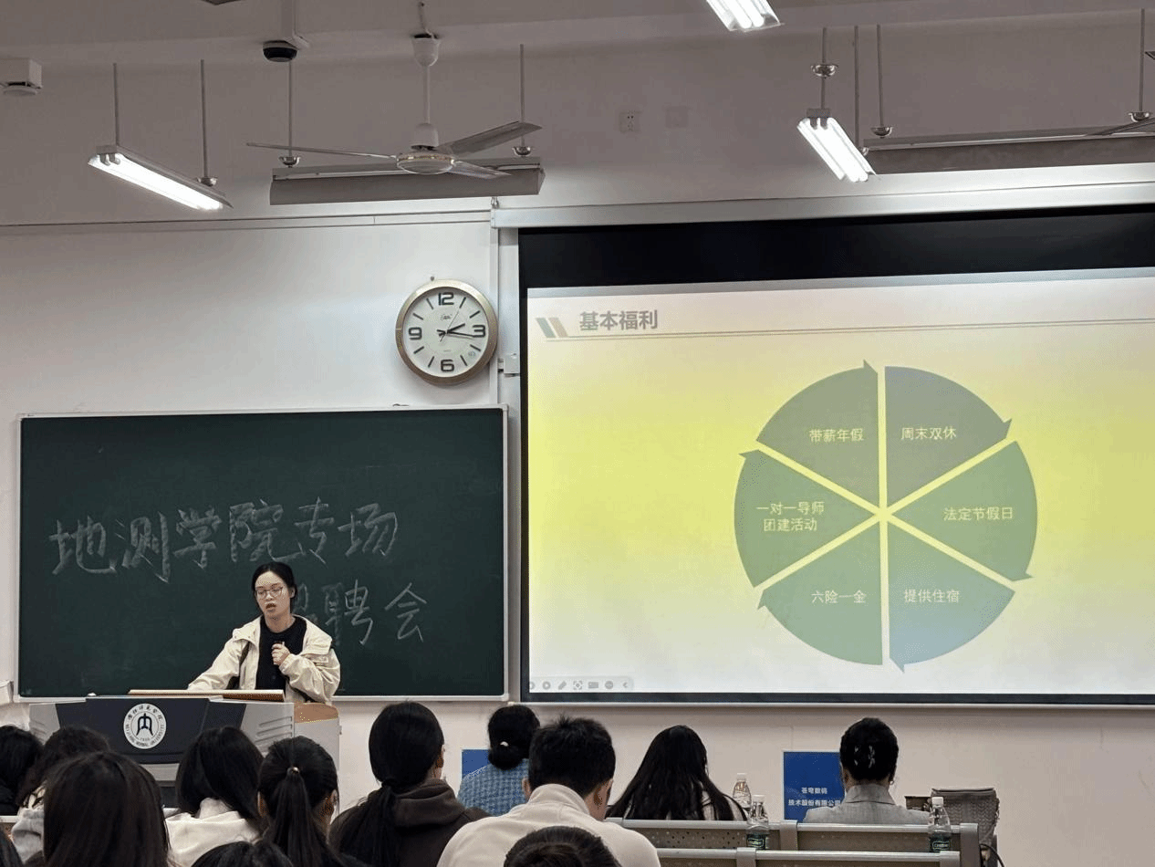 首先胡晓东副书记致辞,欢迎并感谢参会企业,强调宣讲会是落实就业政策、深化校企合作的重要举措,为毕业生搭建就业平台、为大三学生提供实习机会,鼓励同学们明确规划、把握机遇、提升素养。然后,各企业代表依次登台,围绕企业发展历程、核心业务领域、岗位需求、薪资待遇、晋升路径及实习培养计划等核心内容进行详细介绍,重点结合地理信息、测绘工程等学院特色专业,解读岗位适配要求与职业发展前景,让同学们对行业现状与就业方向有了清晰认知。