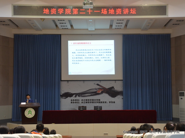 11月16日晚上19点,我院陈鹏宇博士在第一学术报告厅成功开展了题为“泥石流危险度评价中的降雨条件与群决策模型构建”的第二十一场地资讲坛。