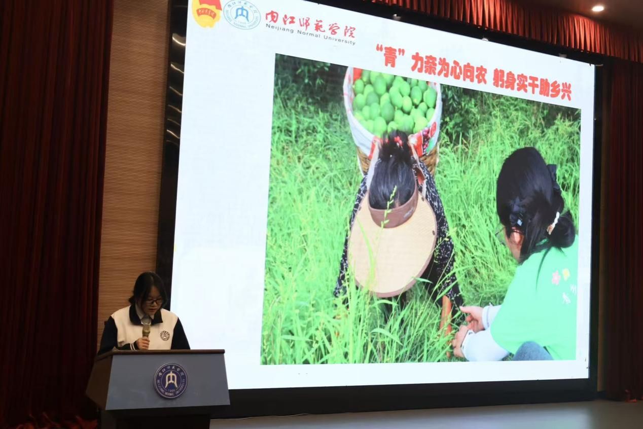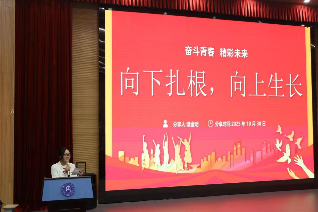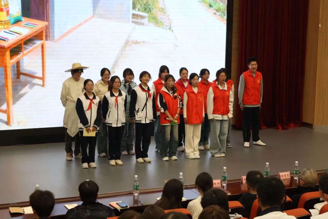 “奋斗担当”篇章里,同学们编排的“三下乡”暑期实践活动情景剧,生动再现了暑期扎根基层支教、用专业知识助力乡村发展的场景,诠释了服务社会、助力乡村振兴的青春担当,赢得阵阵掌声。“三下乡”暑期实践代表王建英分享的实践感悟引发全场共鸣。团学标兵文芯悦、国家奖学金获得者谭金明同学分别分享了成长方法论与专业学习、学科竞赛经验,为学弟学妹提供了切实借鉴。