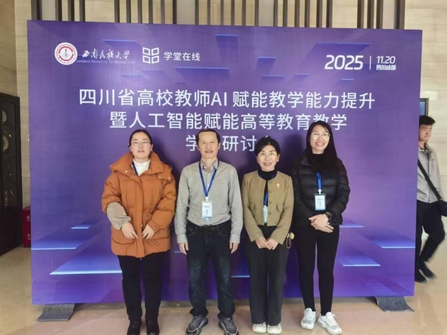 为深入贯彻落实习近平总书记关于教育强国的重要论述,推动四川省高等教育高质量发展,2025年11月19日至20日,由教育部在线教育研究中心、四川省课程建设指导委员会指导,西南民族大学主办,学堂在线承办的“四川省高校教师AI赋能教学能力提升暨人工智能赋能高等教育教学学术研讨会”在成都顺利召开。来自全省多所高校的教师代表齐聚西南民族大学,围绕“人工智能赋能教育教学”主题展开深入交流与研讨。我院王昌勇、周丽、付洪利、赵晓燕四位教师参加了研讨会的学习与交流活动。