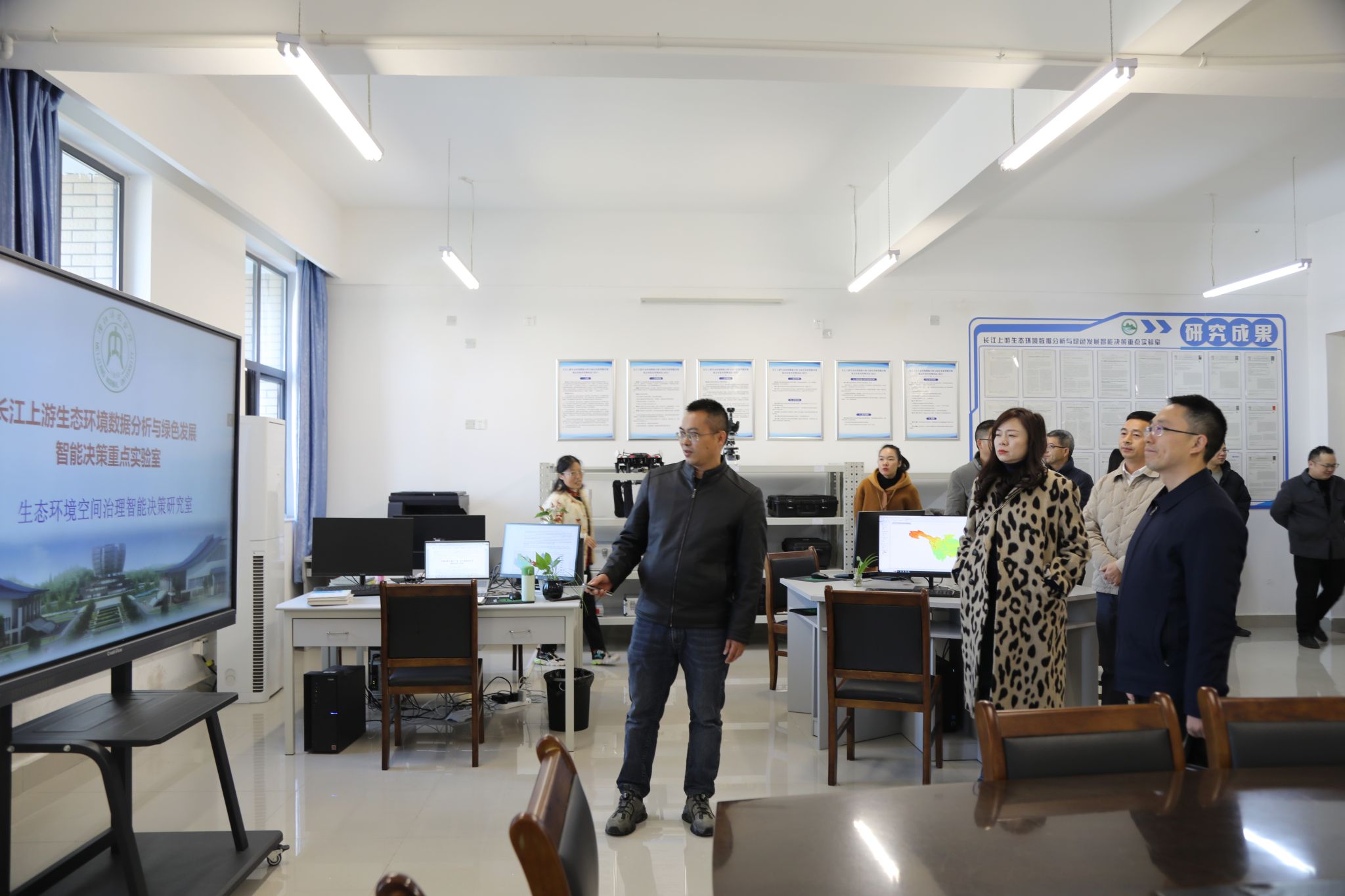 11月20日下午,省社科联陈雄调研员率专家组一行5人来校,对我校“长江上游生态环境数据分析与绿色发展智能决策重点实验室(培育)”开展评估工作。学校党委副书记、校长郭云东,党委常委、副校长胡金朝,副校长、实验室主任李益彬,以及学校科技处和地测学院负责人、实验室团队成员参加。重点实验室评估分实地考察和座谈交流两个阶段进行。