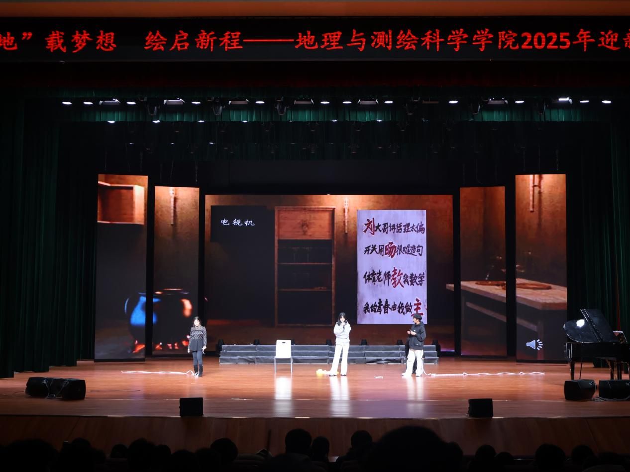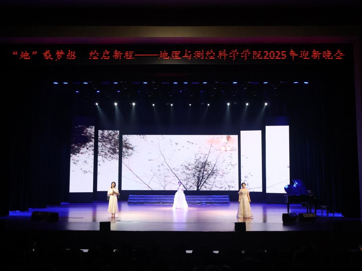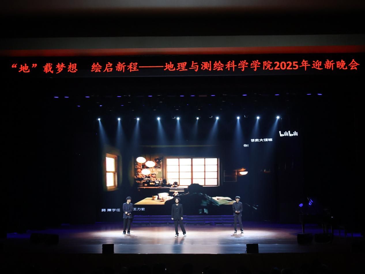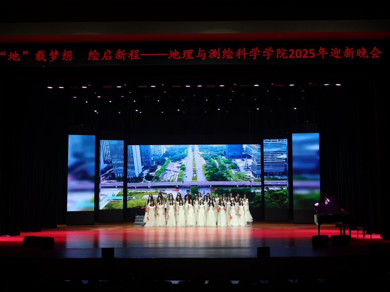 为迎接2025级新生,丰富校园文化生活,12月10日晚七点,地理与测绘科学学院以“‘地’载梦想 绘启新程”为主题的2025年迎新晚会在苌弘剧院举行。我院院长蒋乾、党委副书记胡晓东、副院长何阳阳、罗杨洁及全体师生共同参与。