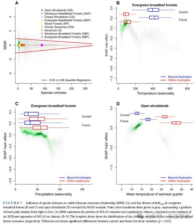 研究还指出,在未来气候条件下,部分区域的灌丛生态系统在生物量积累方面可能表现出相对优势,提示陆地碳汇的主导植被类型及其空间格局可能出现新的变化趋势。这一结果为重新认识不同植被类型在全球碳中和进程中的作用提供了理论参考。