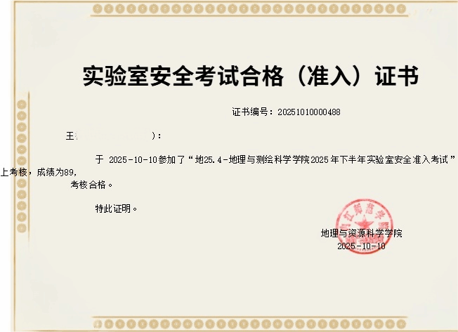 2.请需要进入实验室的师生准时参加培训和考试,无考试合格证书者一律不能进入实验室。如因系统原因不能下载考试合格证,请保存网页成绩证明,已通过考试并获得合格证的师生不用再进行考试。